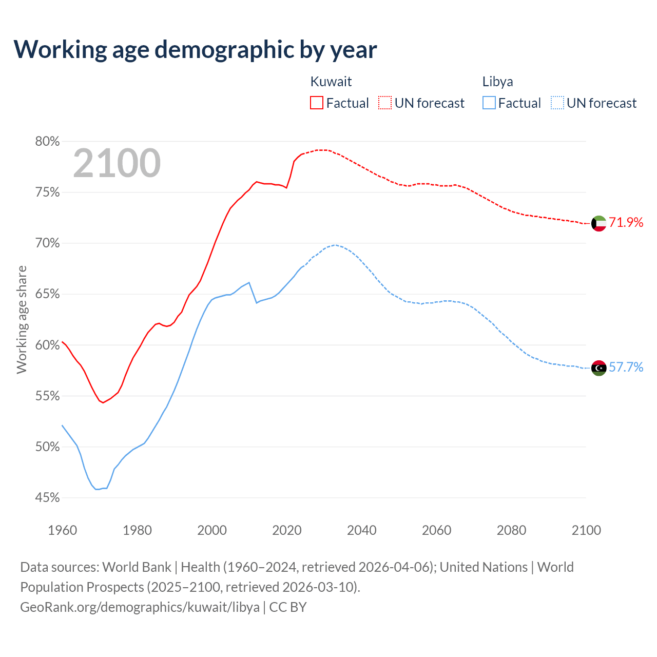 - Kuwait has 4.01M working age adults (aged 15-64) vs 5.11M in Libya.