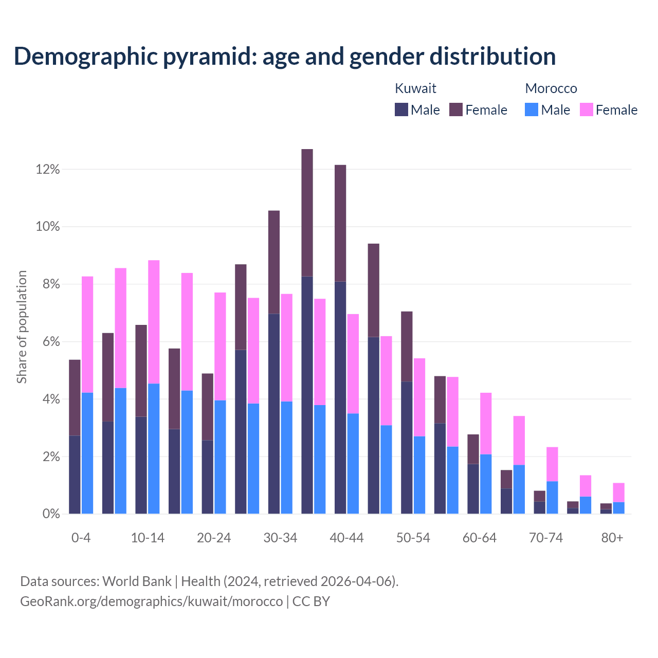 Demographics of Kuwait compared to Morocco: