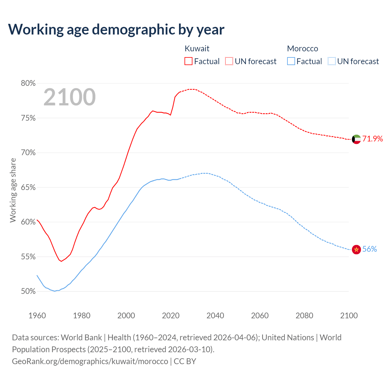 - Kuwait has 4.01M working age adults (aged 15-64) vs 25.7M in Morocco.