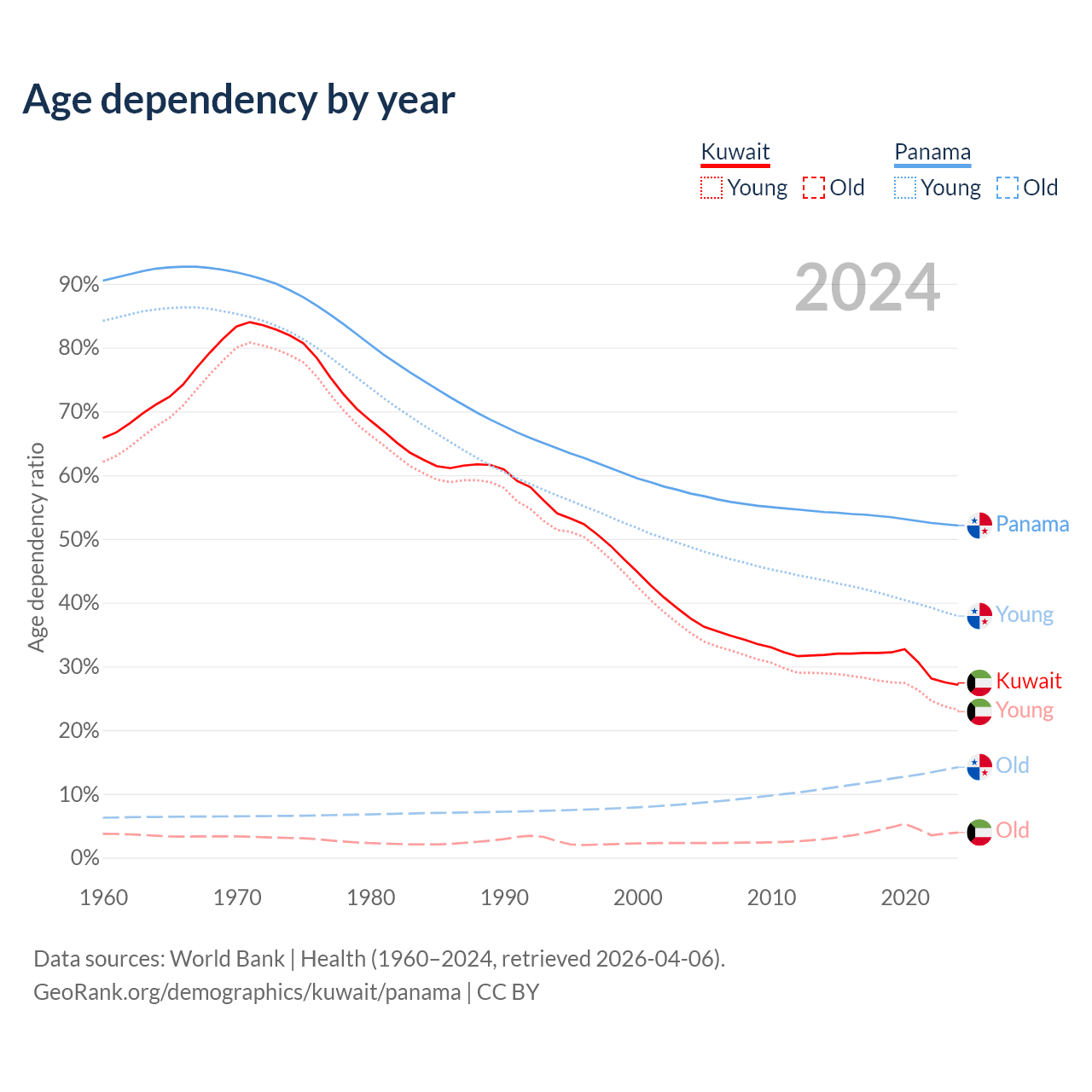 - Kuwait is ranked 71/196 by median age (oldest to youngest) vs 94/196 for Panama.