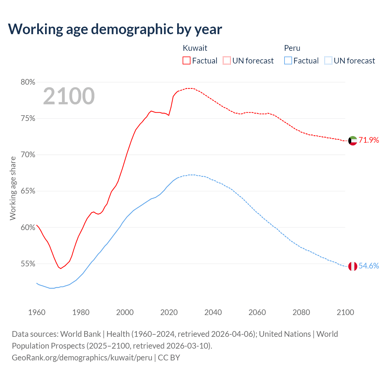 - Kuwait has 4.01M working age adults (aged 15-64) vs 23.4M in Peru.