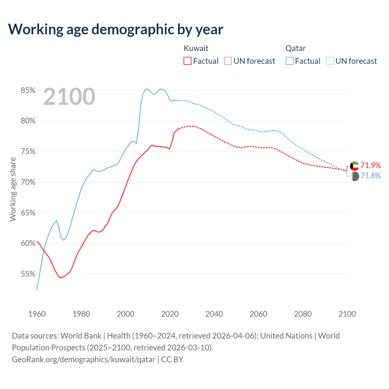 - Kuwait has 4.01M working age adults (aged 15-64) vs 2.5M in Qatar.