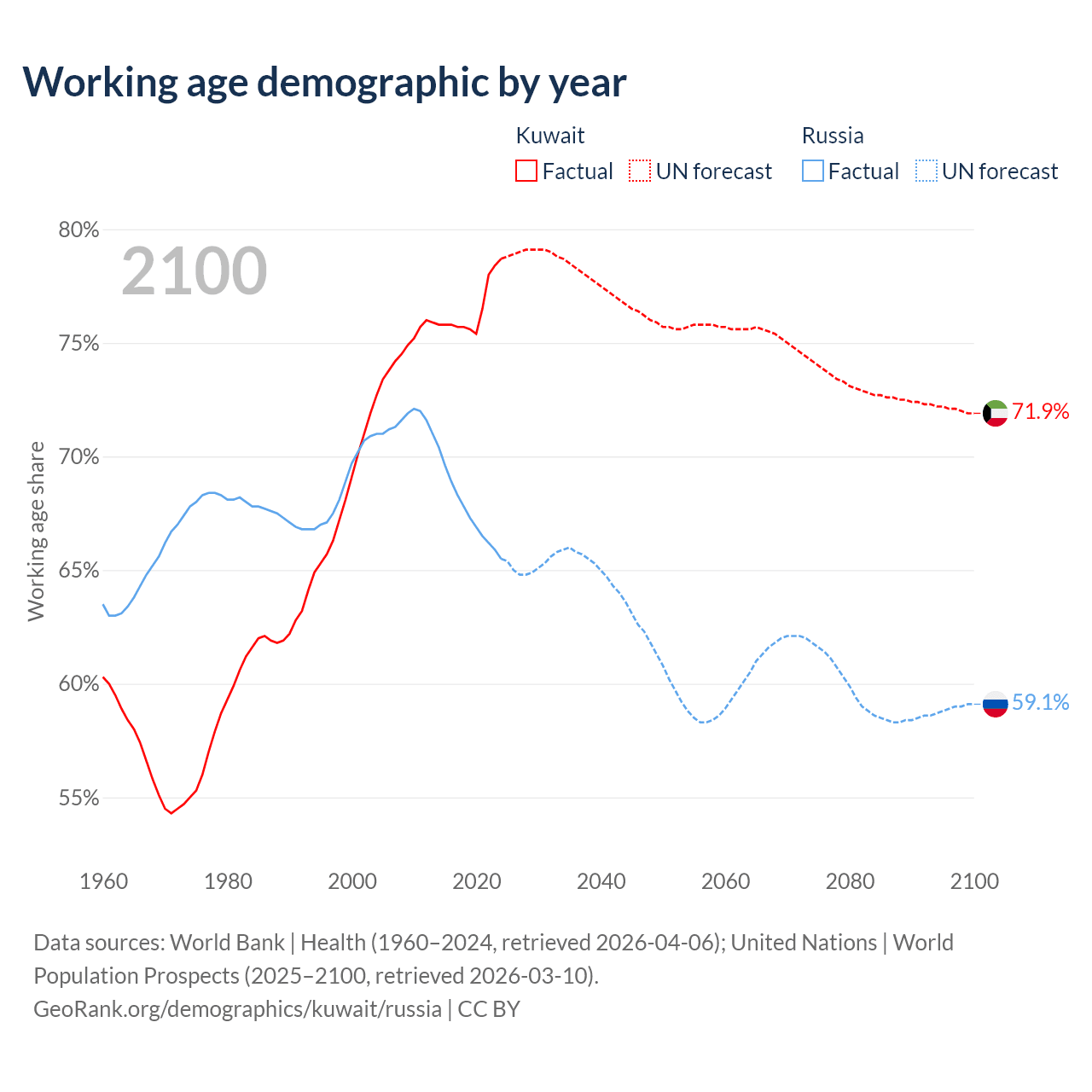 - Kuwait has 4.01M working age adults (aged 15-64) vs 93M in Russia.