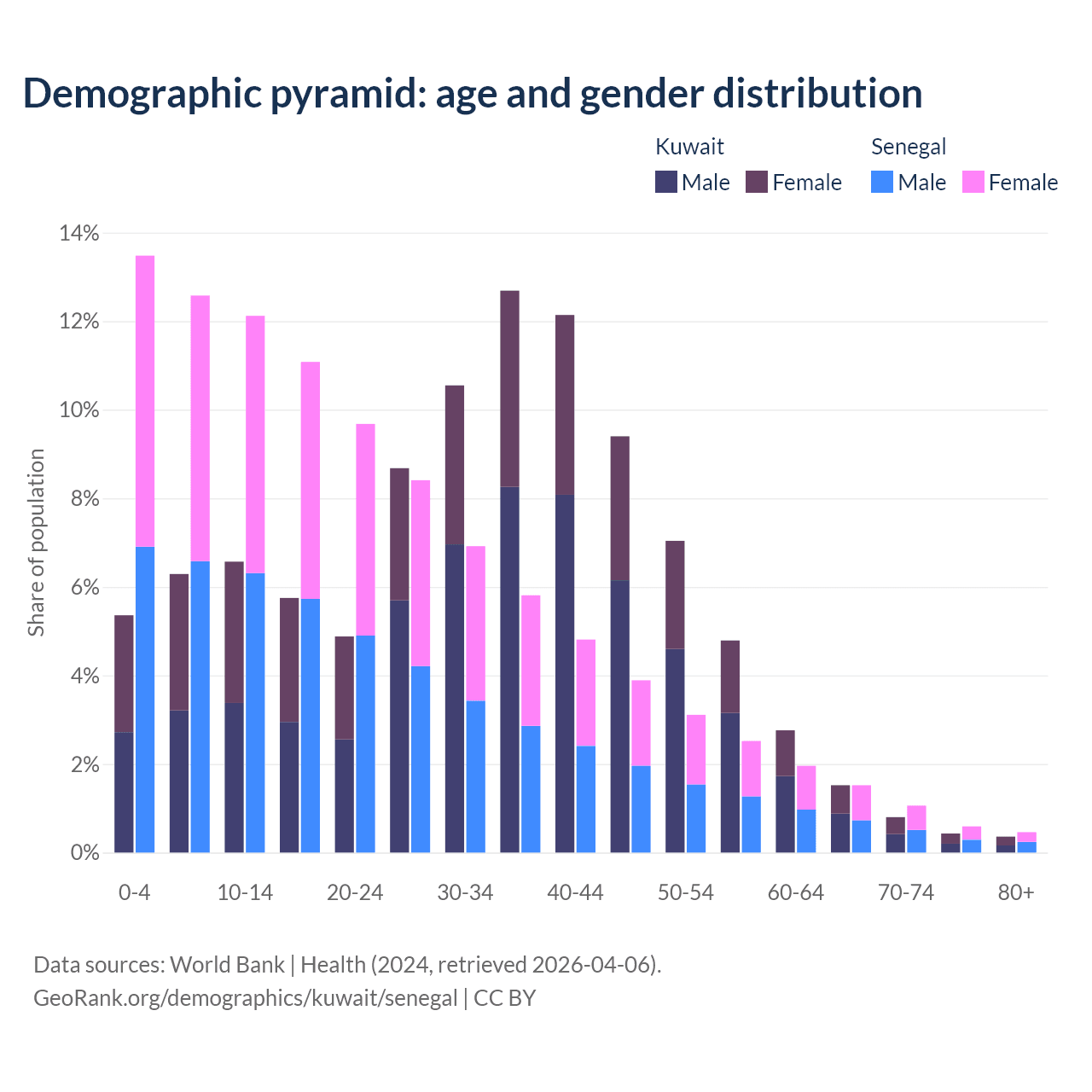 Demographics of Kuwait compared to Senegal: