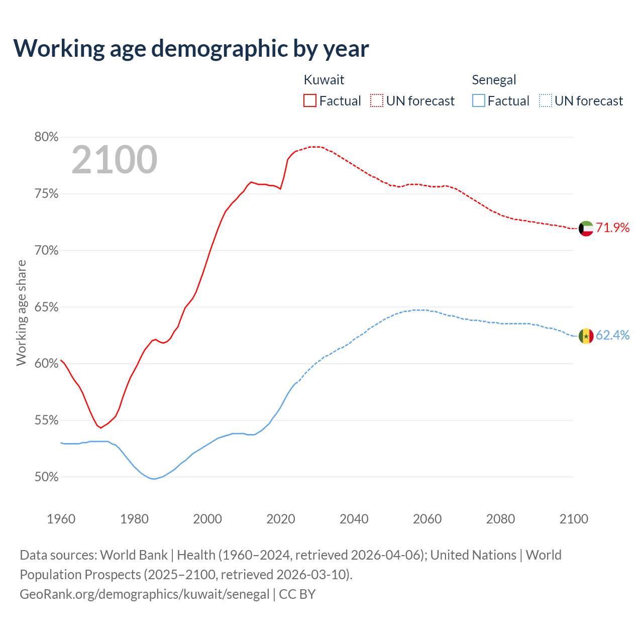 - Kuwait has 4.01M working age adults (aged 15-64) vs 11.3M in Senegal.