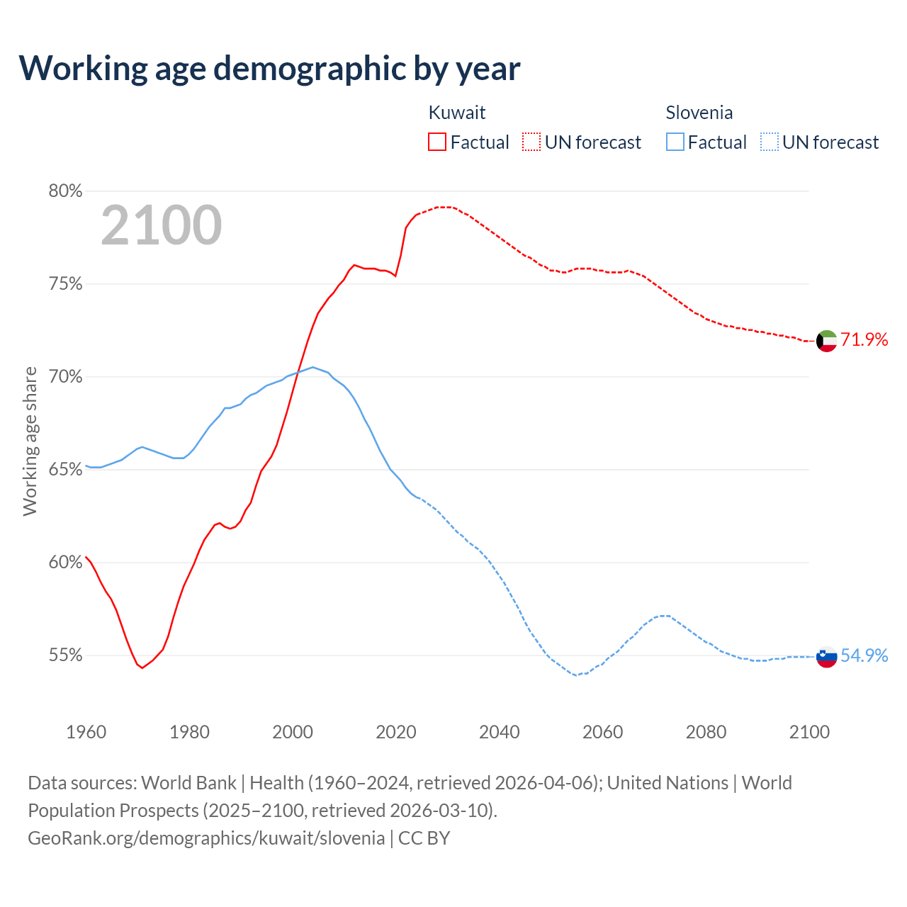 - Kuwait has 4.01M working age adults (aged 15-64) vs 1.35M in Slovenia.