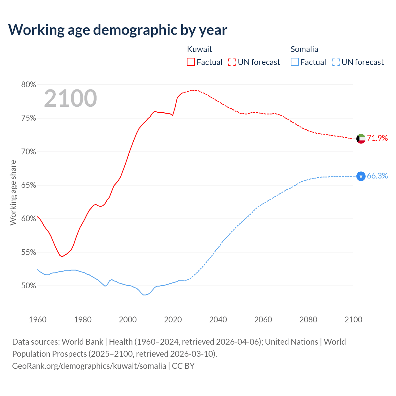 - Kuwait has 4.01M working age adults (aged 15-64) vs 10.4M in Somalia.