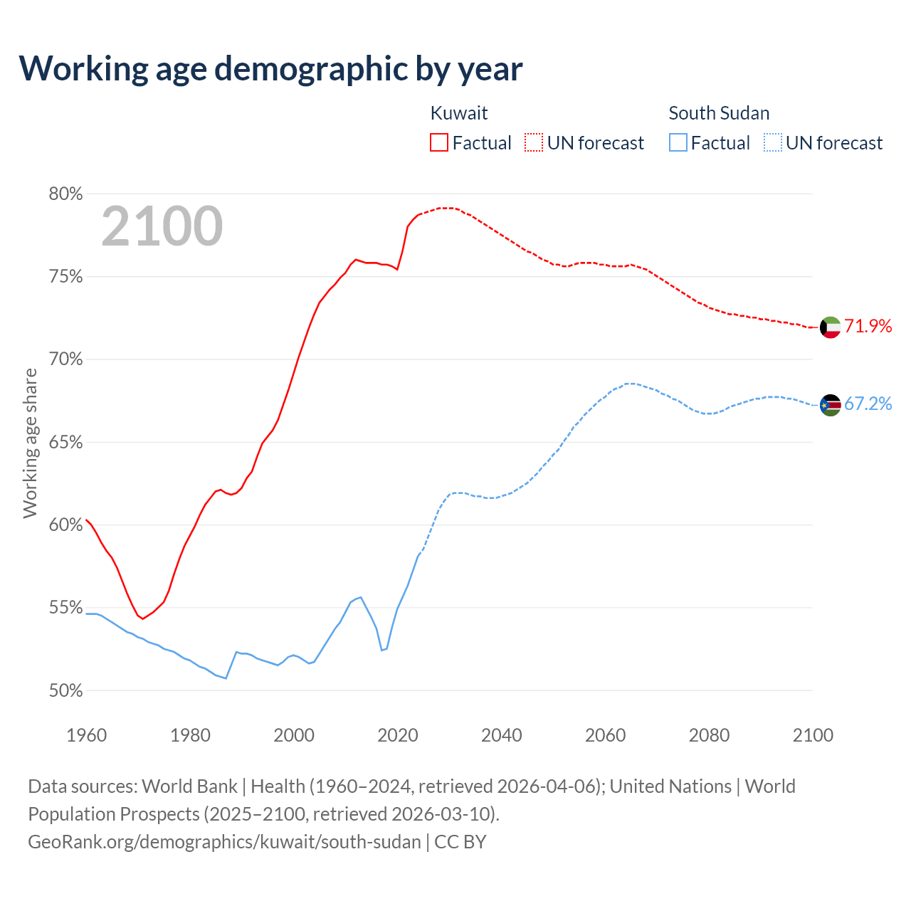 - Kuwait has 4.01M working age adults (aged 15-64) vs 7.27M in South Sudan.