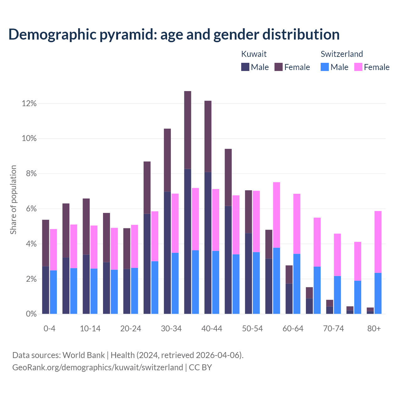 Demographics of Kuwait compared to Switzerland: