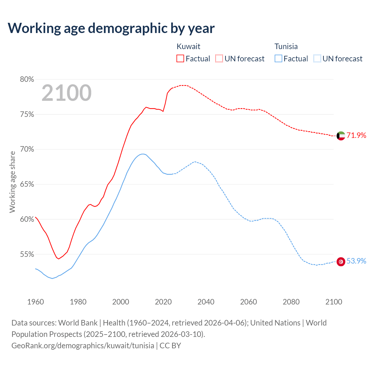 - Kuwait has 4.01M working age adults (aged 15-64) vs 8.26M in Tunisia.