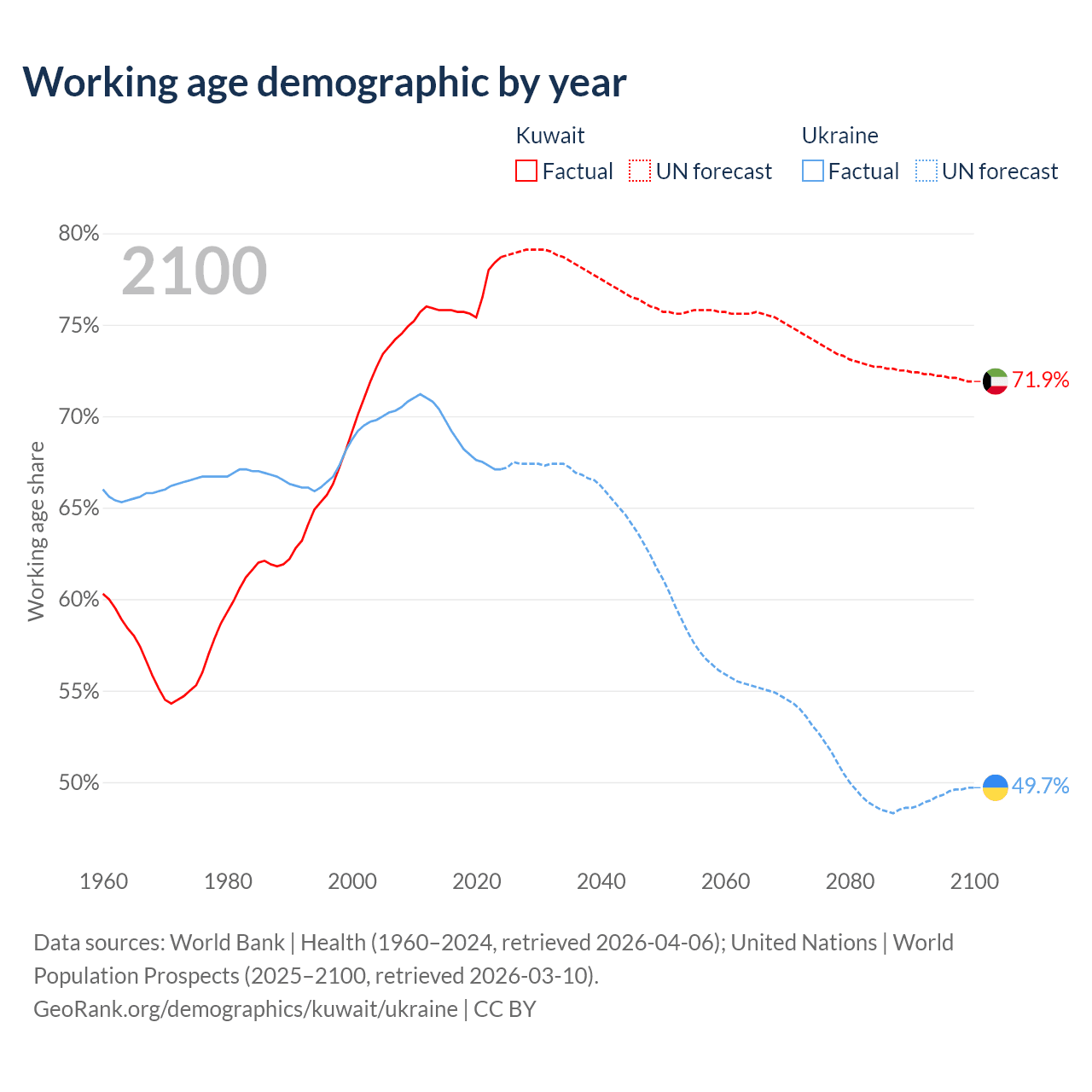 - Kuwait has 4.01M working age adults (aged 15-64) vs 26.9M in Ukraine.