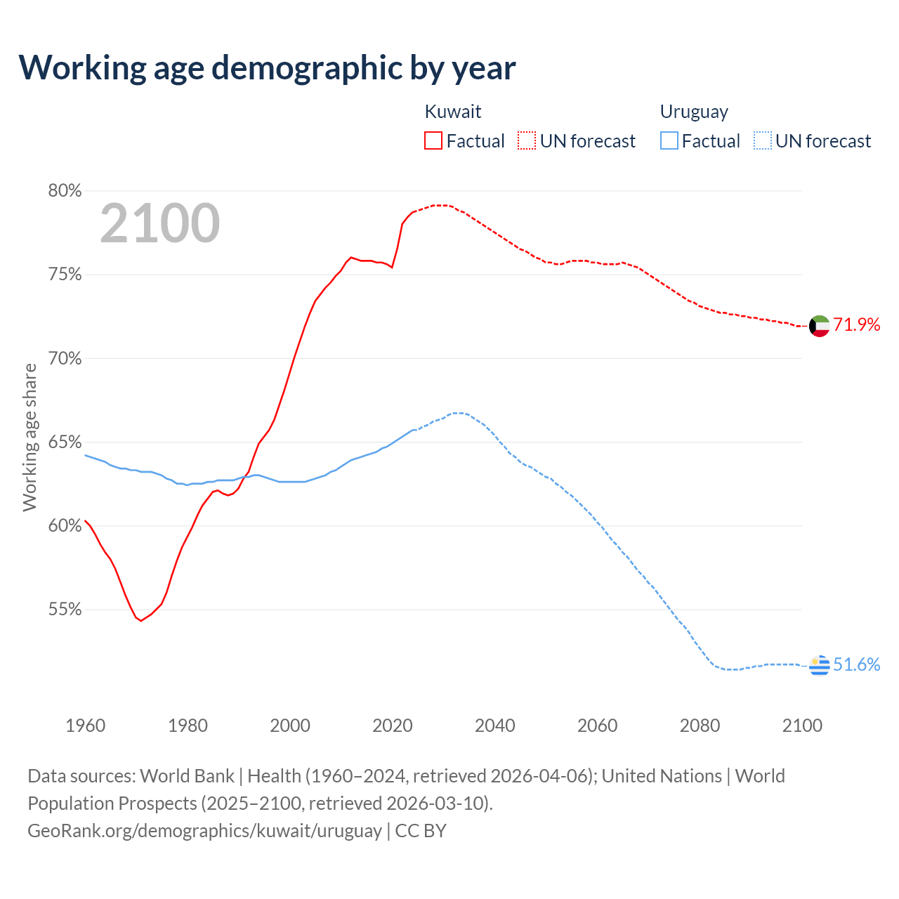 - Kuwait has 4.01M working age adults (aged 15-64) vs 2.22M in Uruguay.