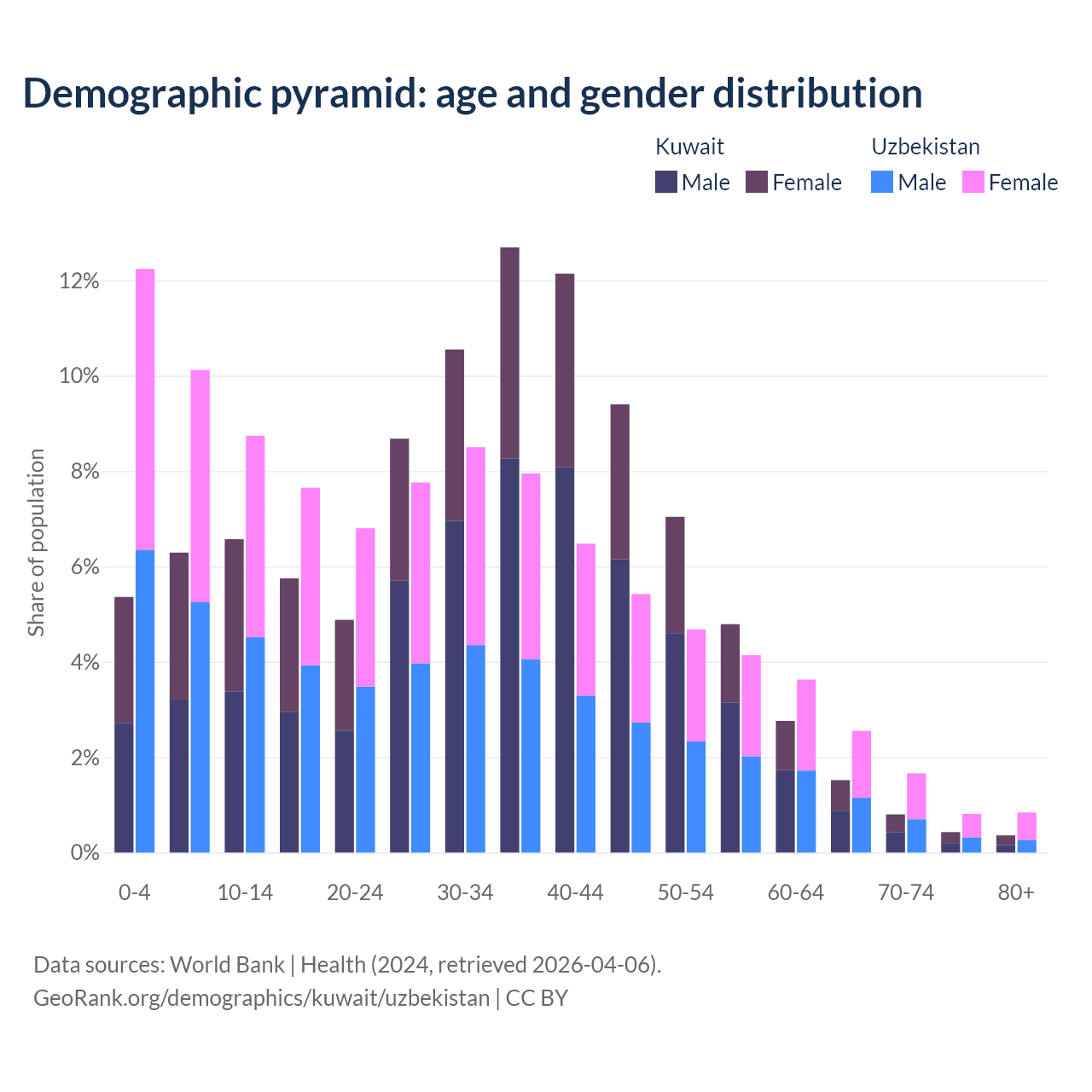 Demographics of Kuwait compared to Uzbekistan:
