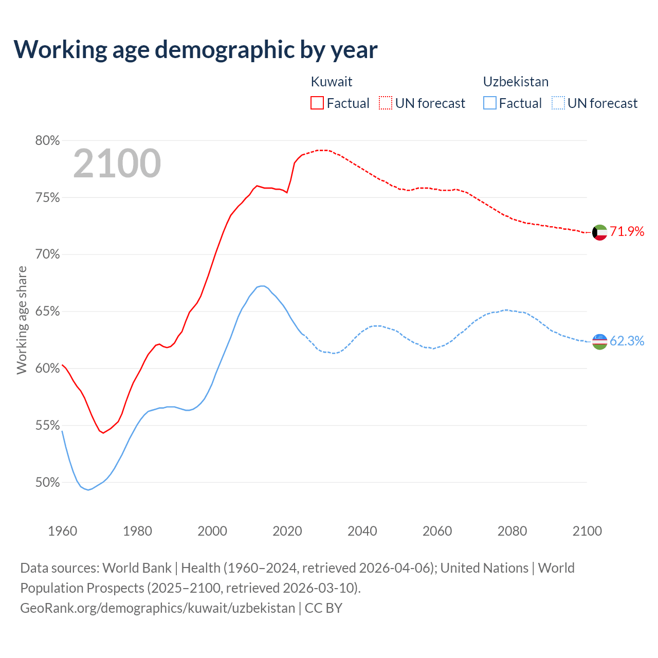 - Kuwait has 4.01M working age adults (aged 15-64) vs 23.9M in Uzbekistan.