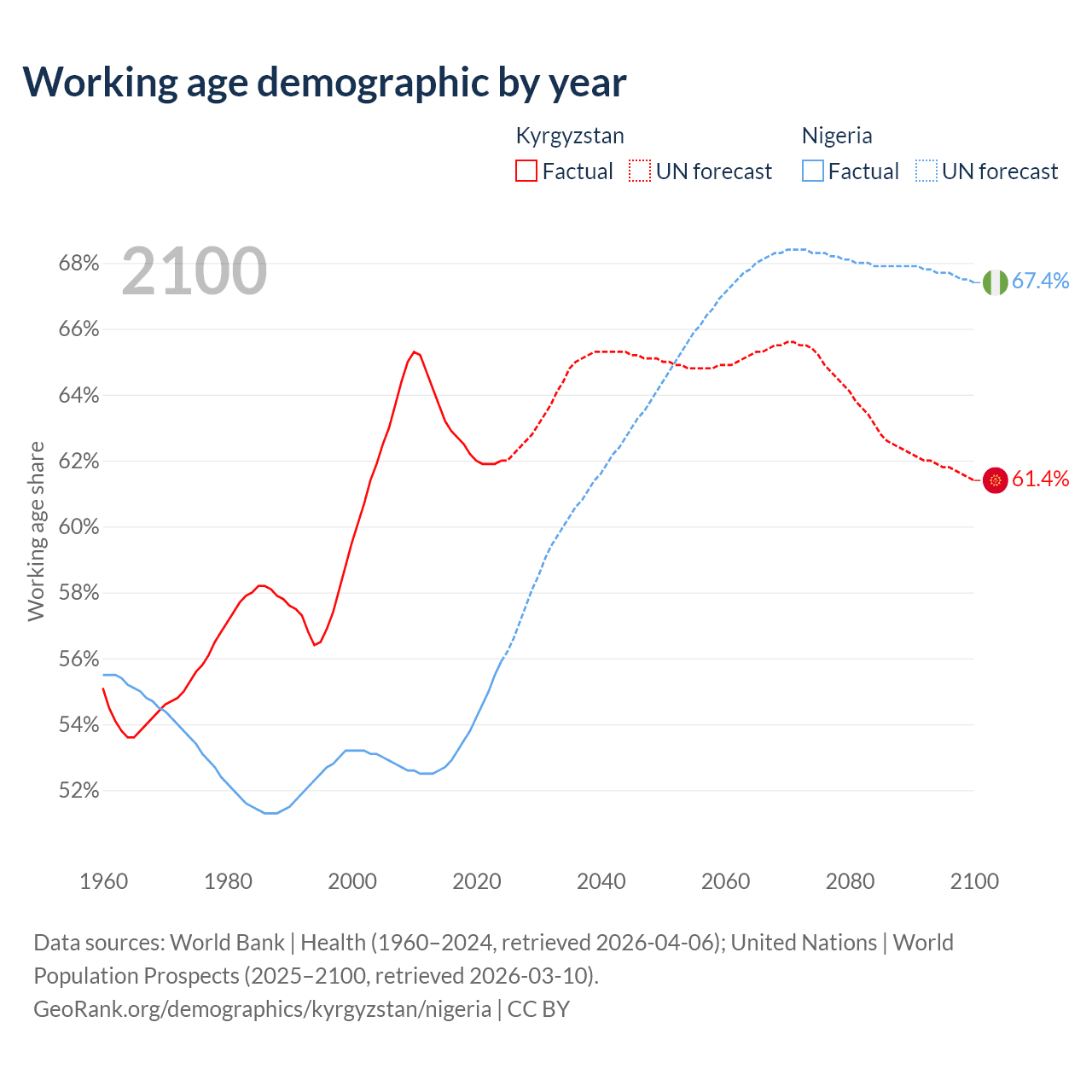 - Kyrgyzstan has 4.63M working age adults (aged 15-64) vs 136M in Nigeria.