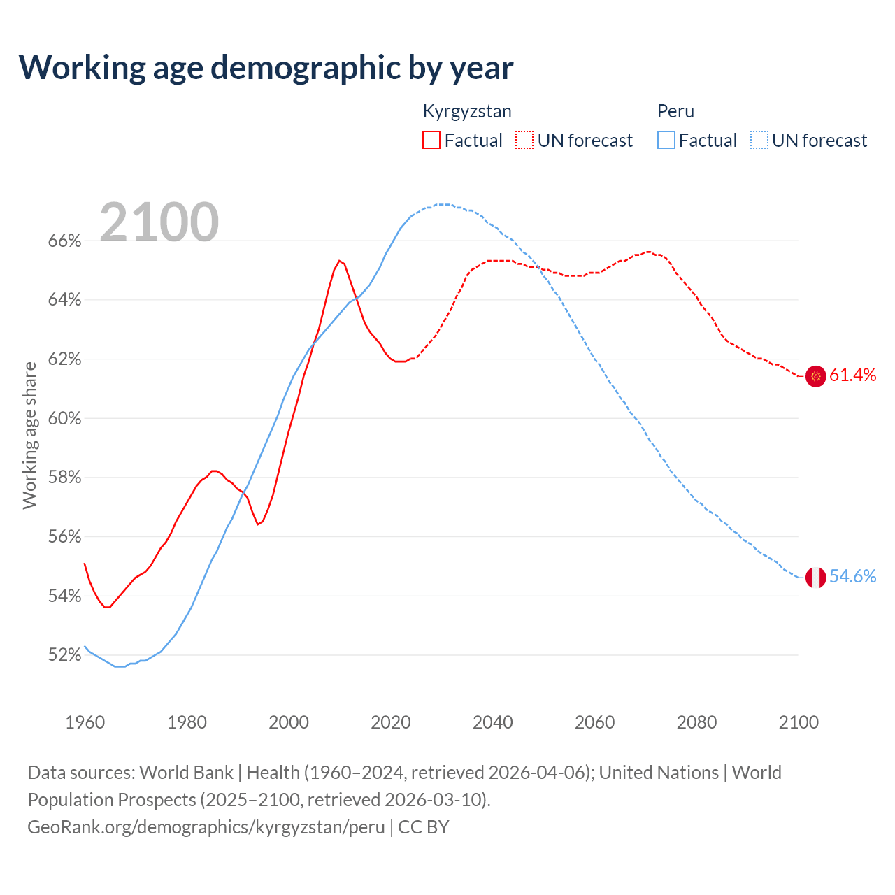 - Kyrgyzstan has 4.63M working age adults (aged 15-64) vs 23.4M in Peru.
