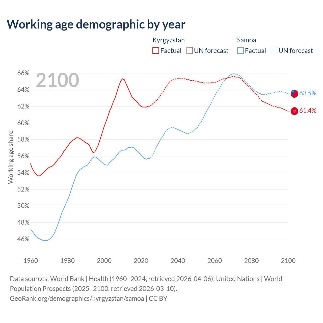 - Kyrgyzstan has 4.63M working age adults (aged 15-64) vs 123K in Samoa.