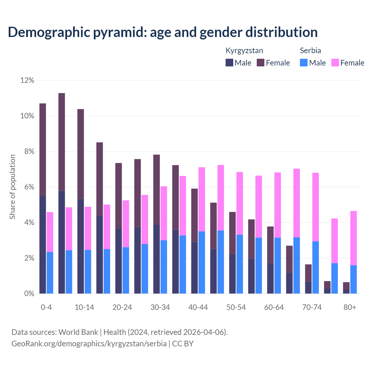 Demographics of Kyrgyzstan compared to Serbia: