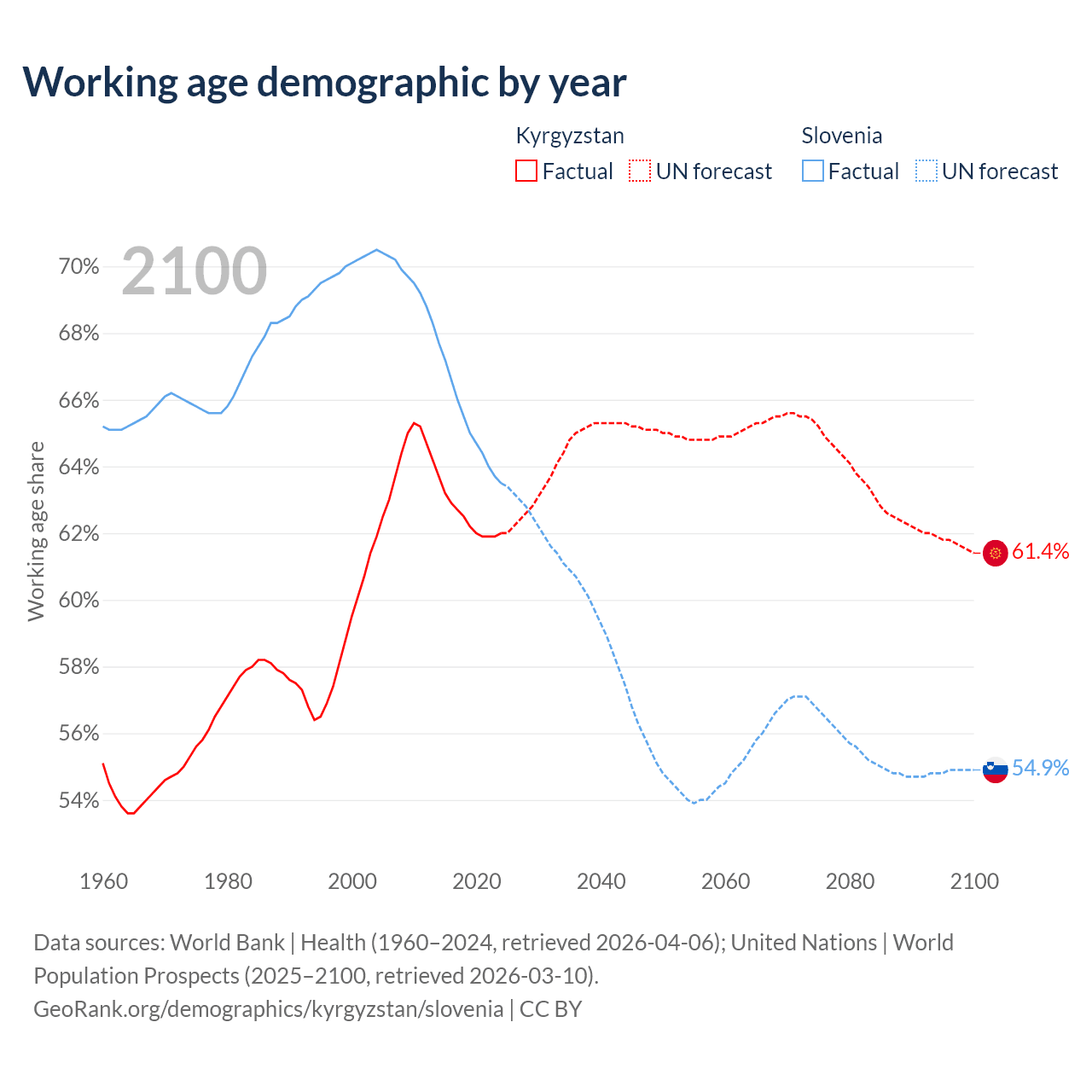 - Kyrgyzstan has 4.63M working age adults (aged 15-64) vs 1.35M in Slovenia.