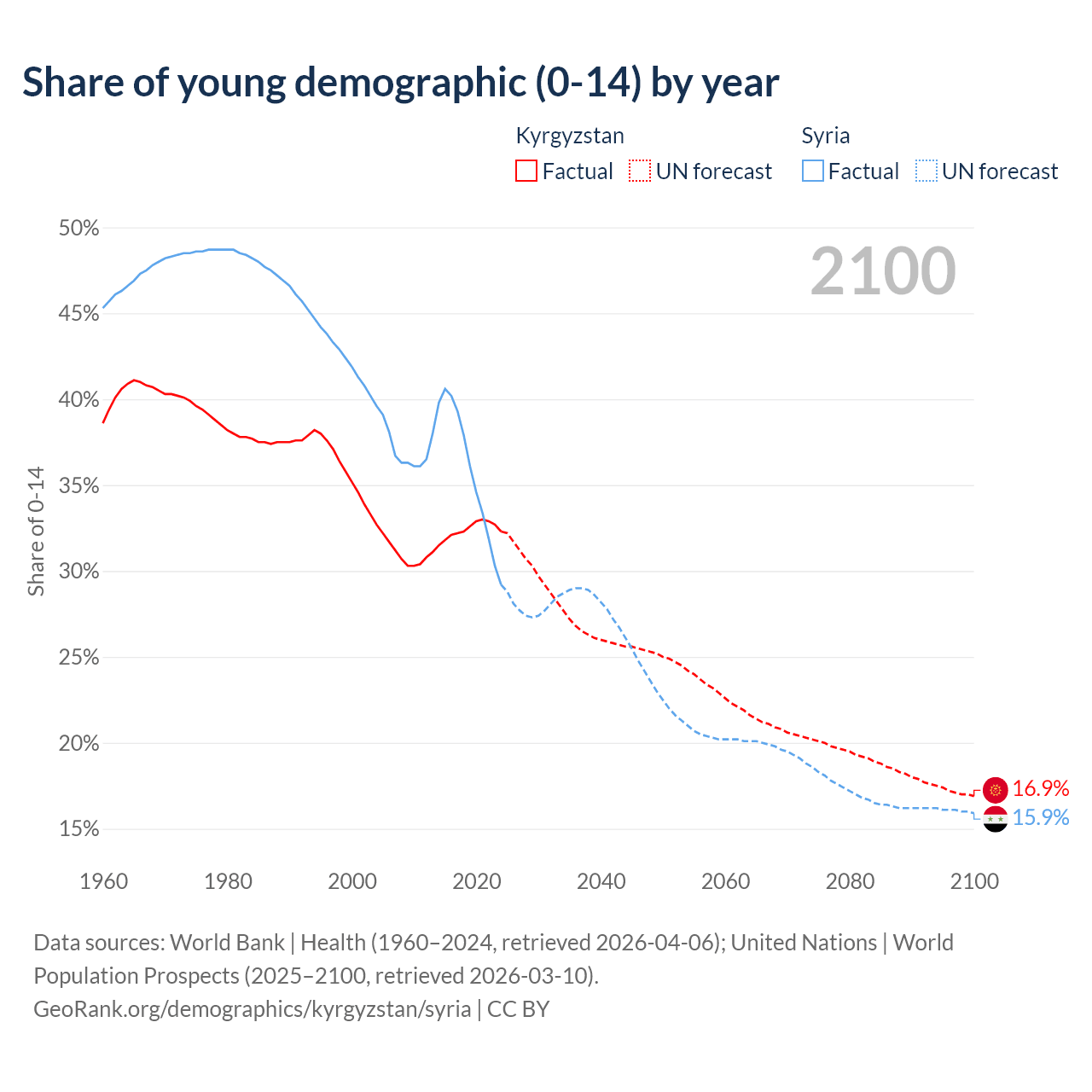- The share of young demographic (0-15 years old) in Kyrgyzstan is 32.3% vs 29.2% in Syria.