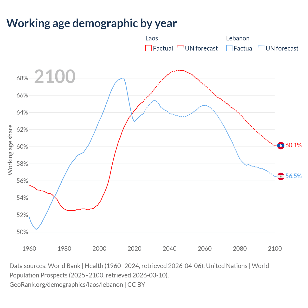 - Laos has 5.21M working age adults (aged 15-64) vs 3.76M in Lebanon.