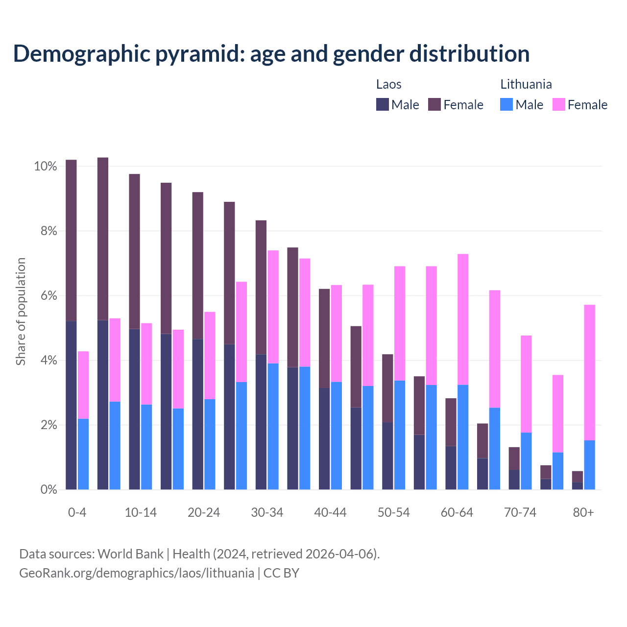 Demographics of Laos compared to Lithuania: