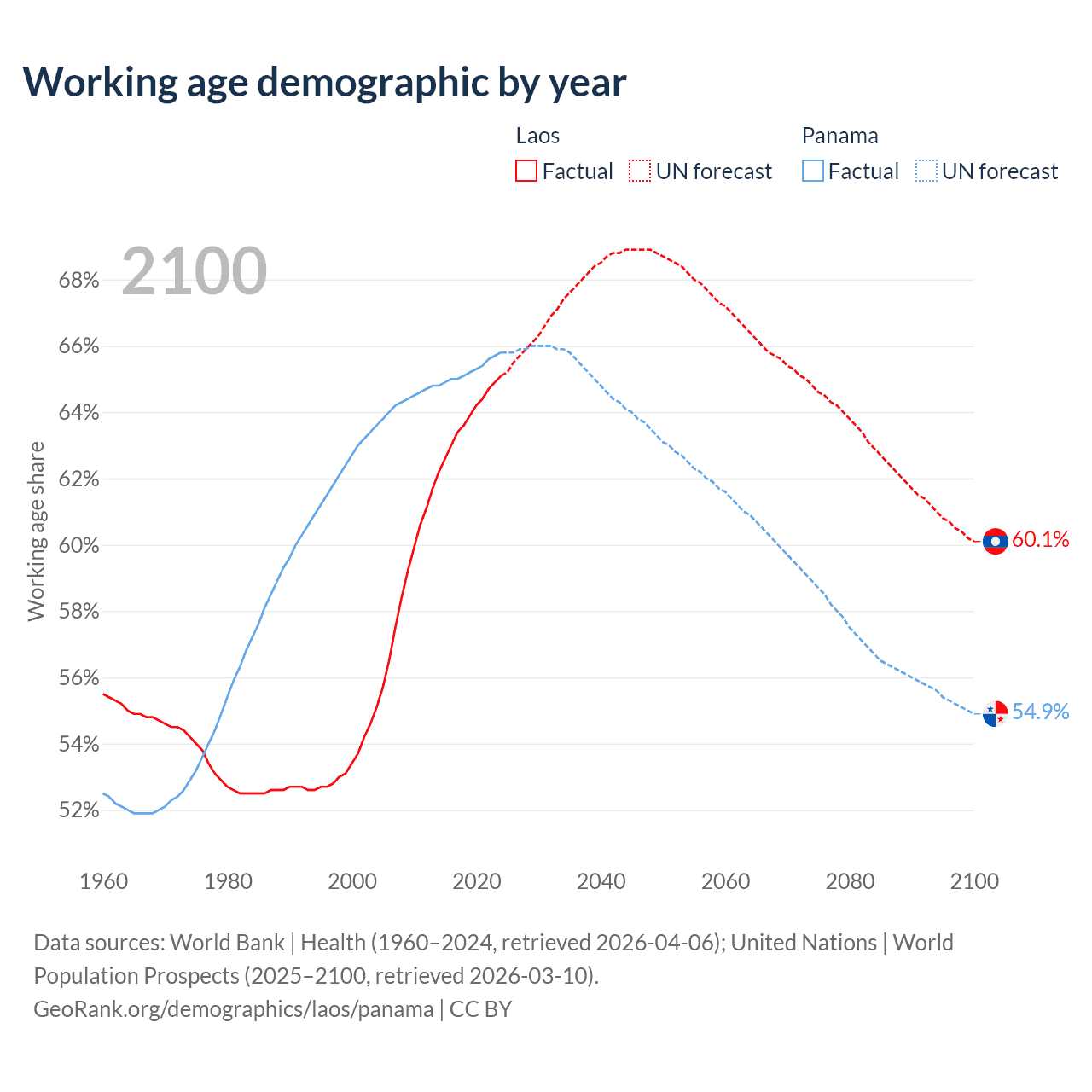- Laos has 5.21M working age adults (aged 15-64) vs 3.05M in Panama.