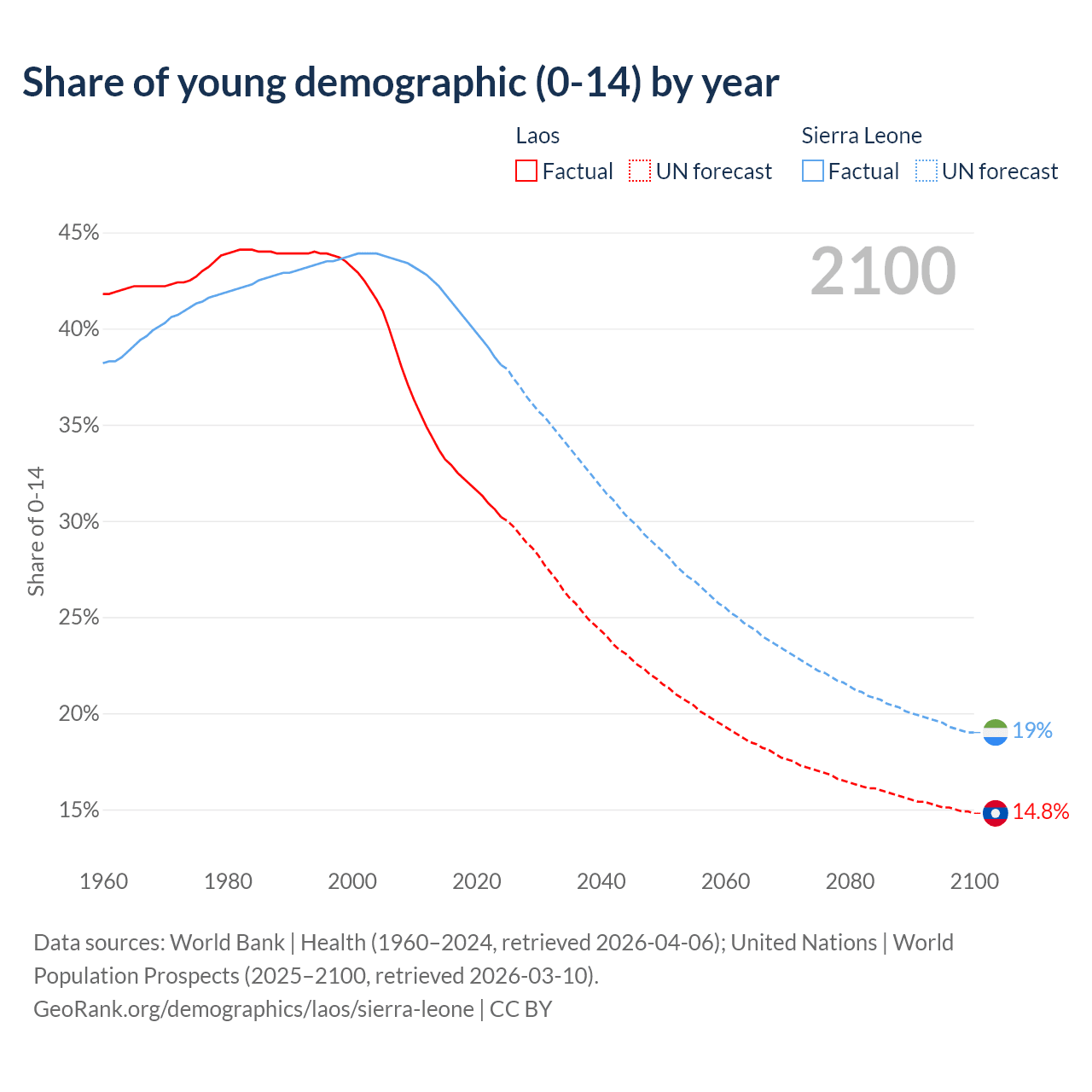 - As of 2026, the population of Laos is 8M vs 9.05M in Sierra Leone.