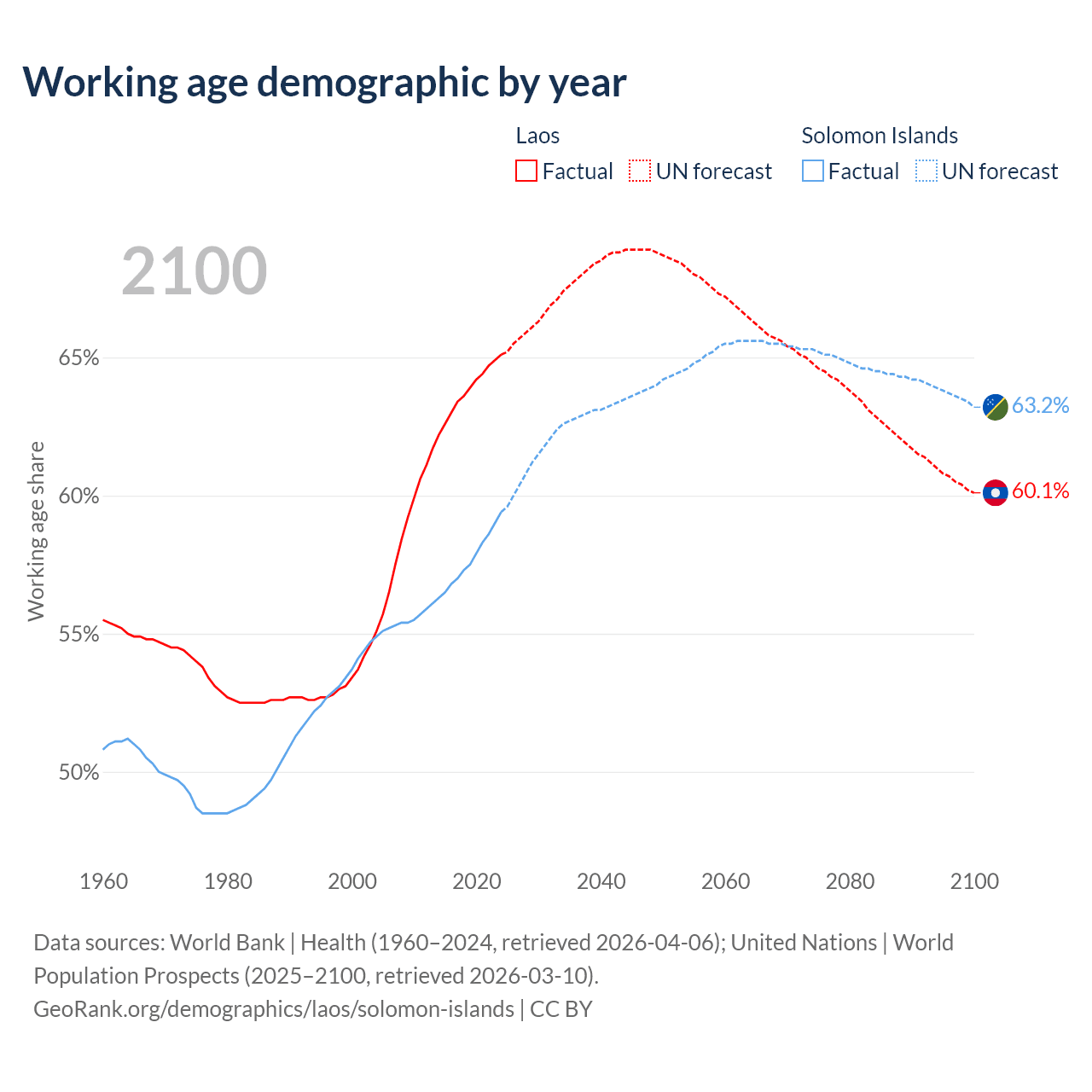 - Laos has 5.21M working age adults (aged 15-64) vs 513K in the Solomon Islands.