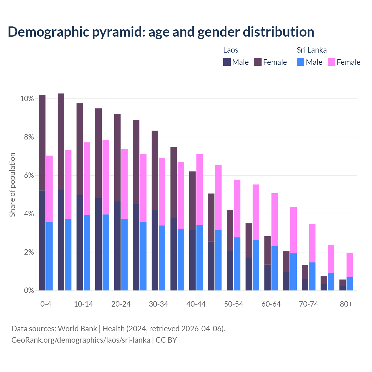 Demographics of Laos compared to Sri Lanka: