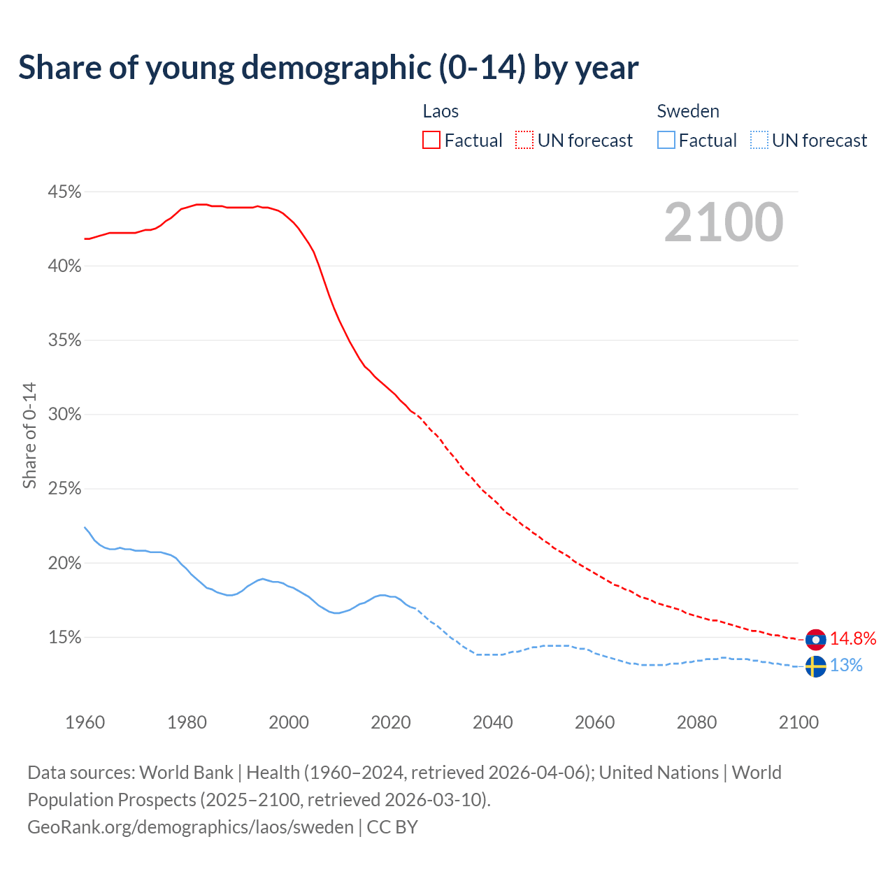 - The share of young demographic (0-15 years old) in Laos is 30.2% vs 17% in Sweden.