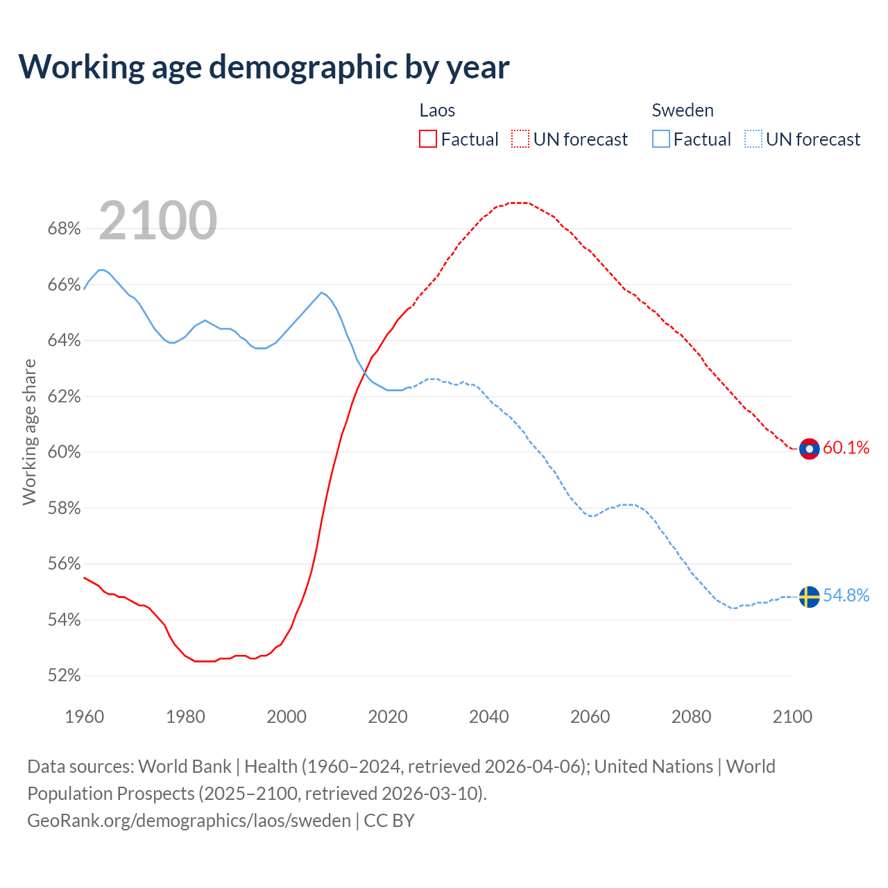 - Laos has 5.21M working age adults (aged 15-64) vs 6.65M in Sweden.