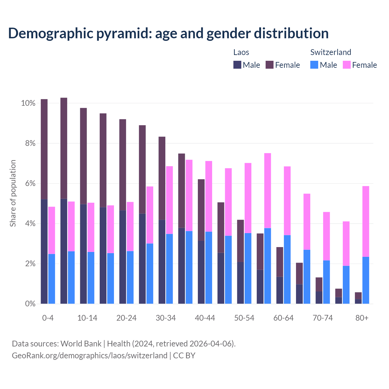 Demographics of Laos compared to Switzerland: