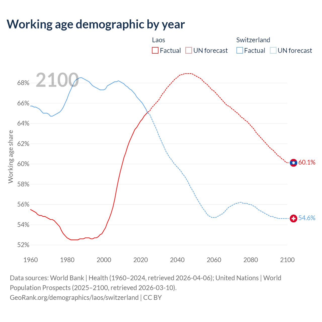 - Laos has 5.21M working age adults (aged 15-64) vs 5.92M in Switzerland.