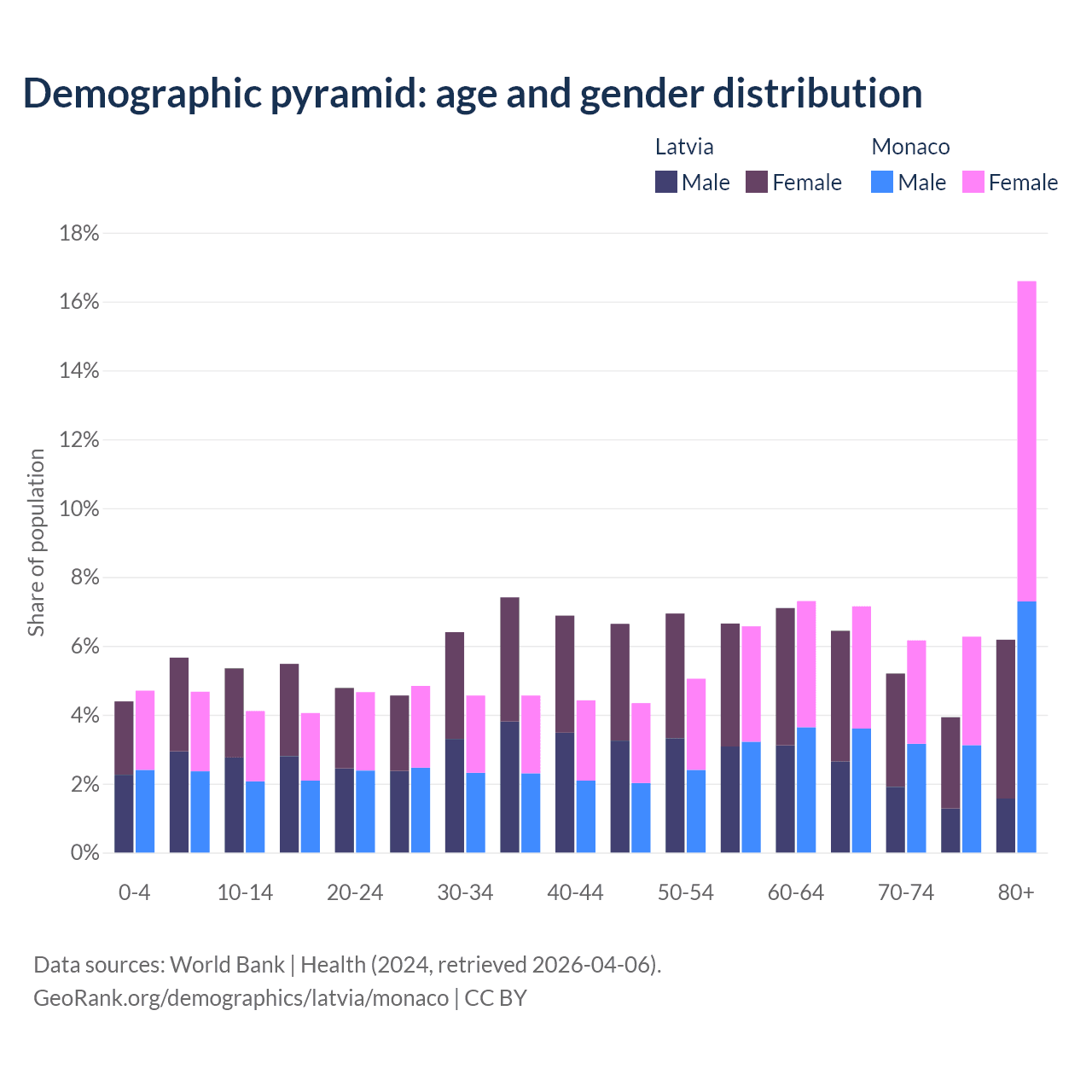 Demographics of Latvia compared to Monaco: