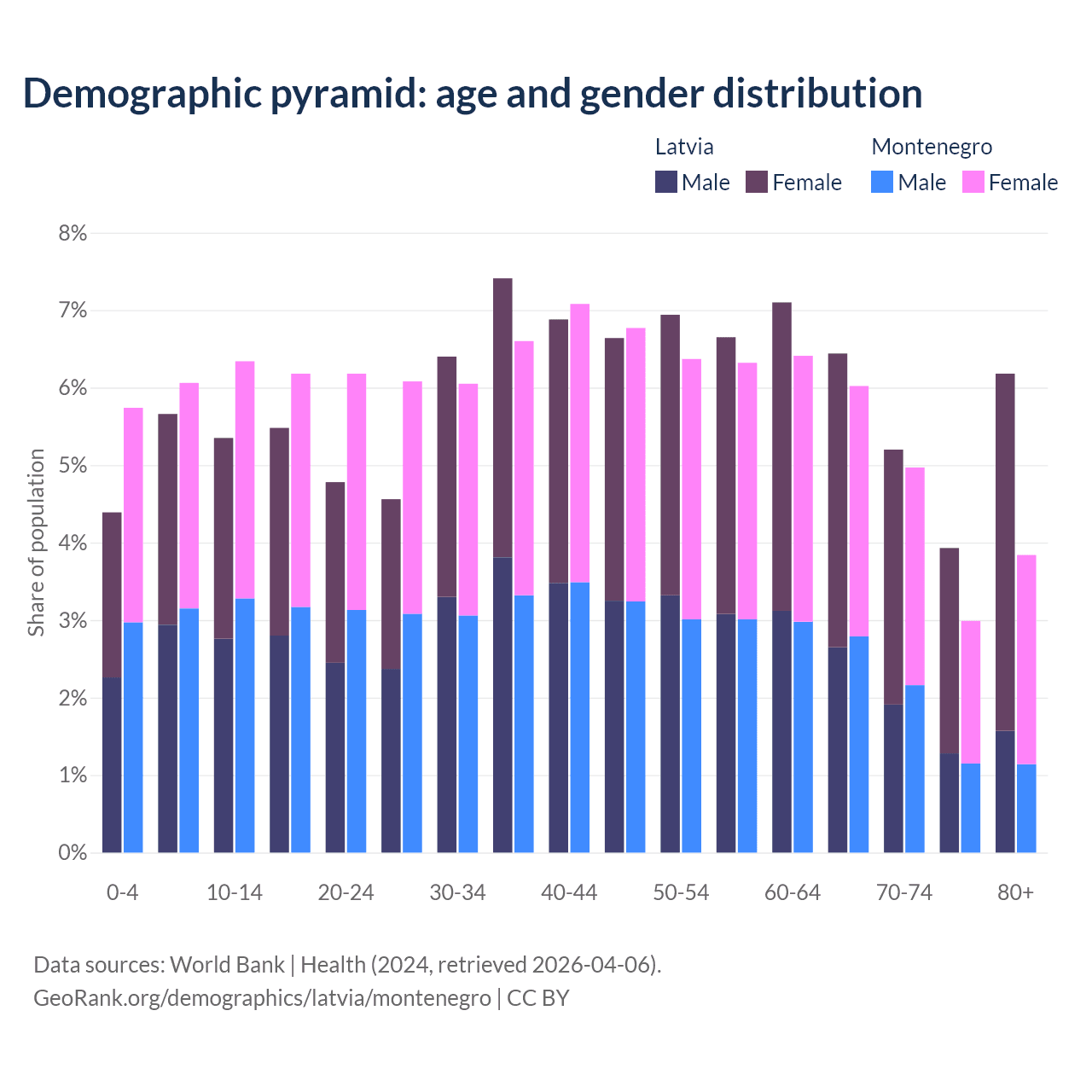 Demographics of Latvia compared to Montenegro: