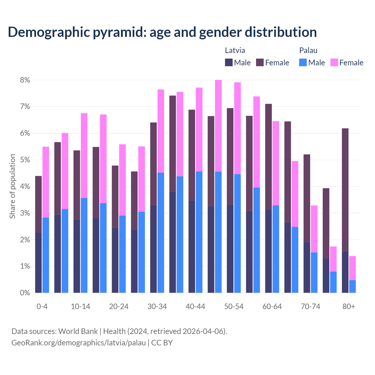 Demographics of Latvia compared to Palau: