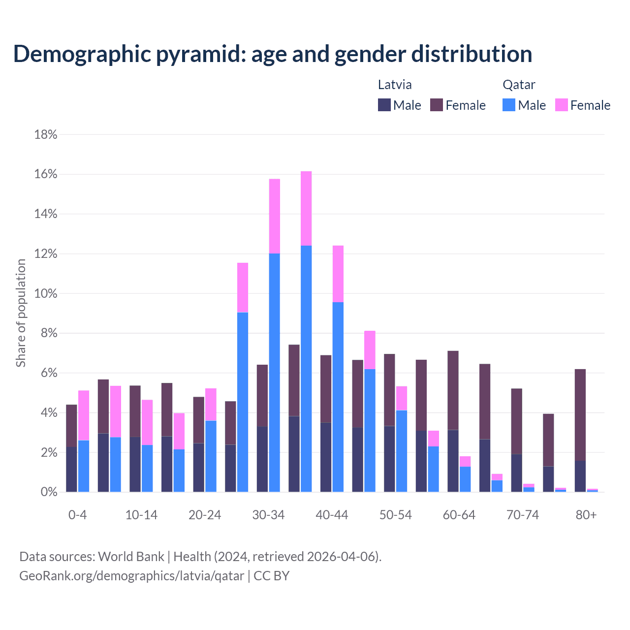 Demographics of Latvia compared to Qatar: