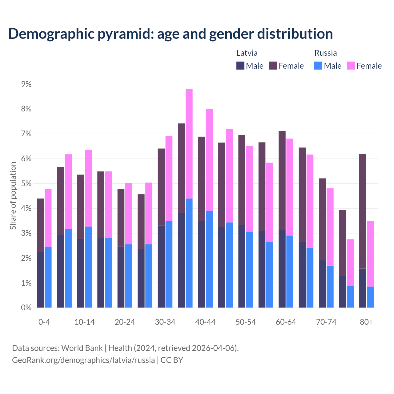 Demographics of Latvia compared to Russia:
