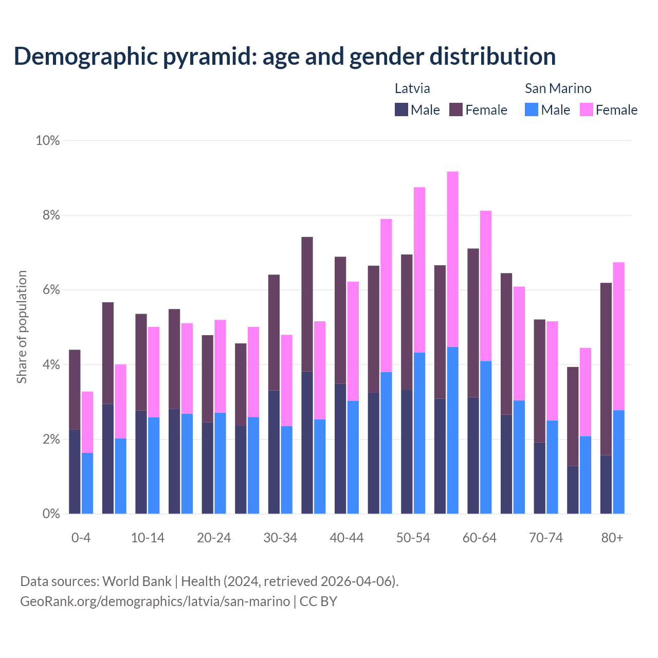 Demographics of Latvia compared to San Marino: