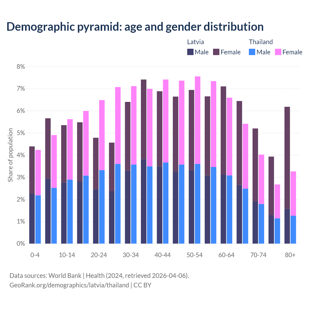 Demographics of Latvia compared to Thailand:
