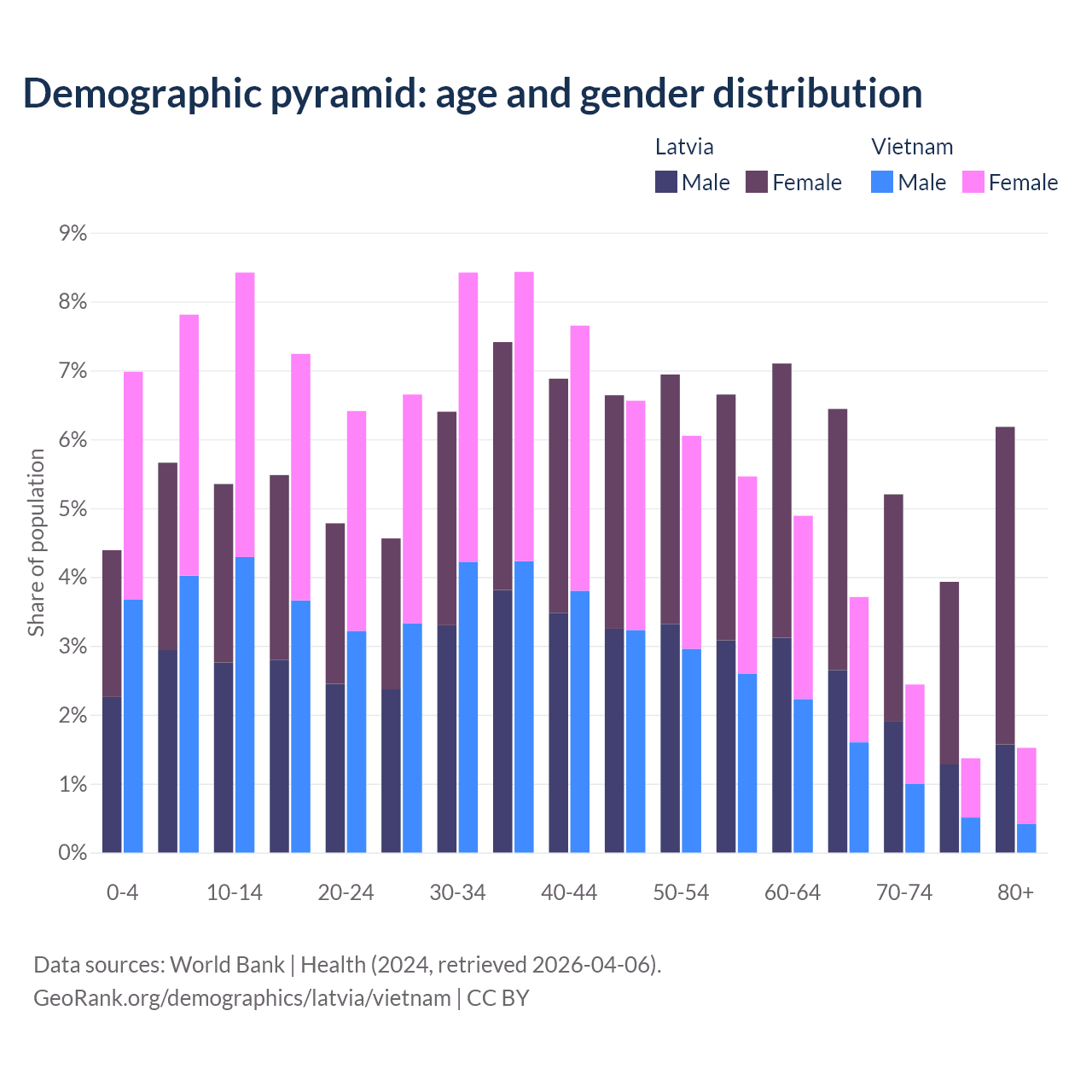 Demographics of Latvia compared to Vietnam: