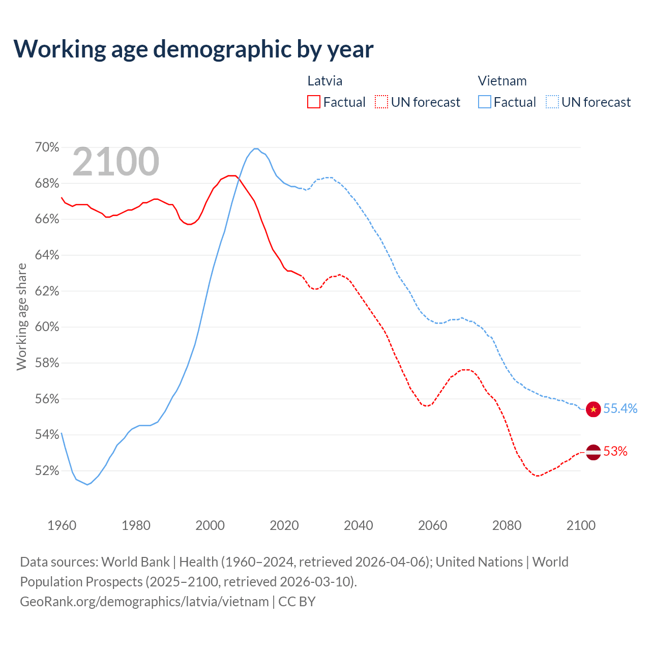 - Latvia has 1.15M working age adults (aged 15-64) vs 69.3M in Vietnam.