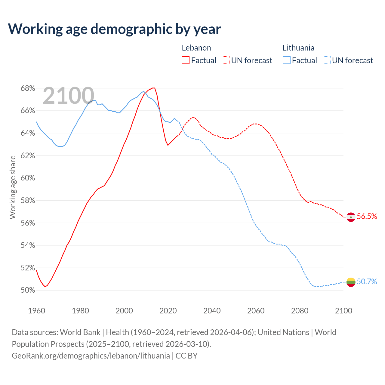 - Lebanon has 3.76M working age adults (aged 15-64) vs 1.84M in Lithuania.