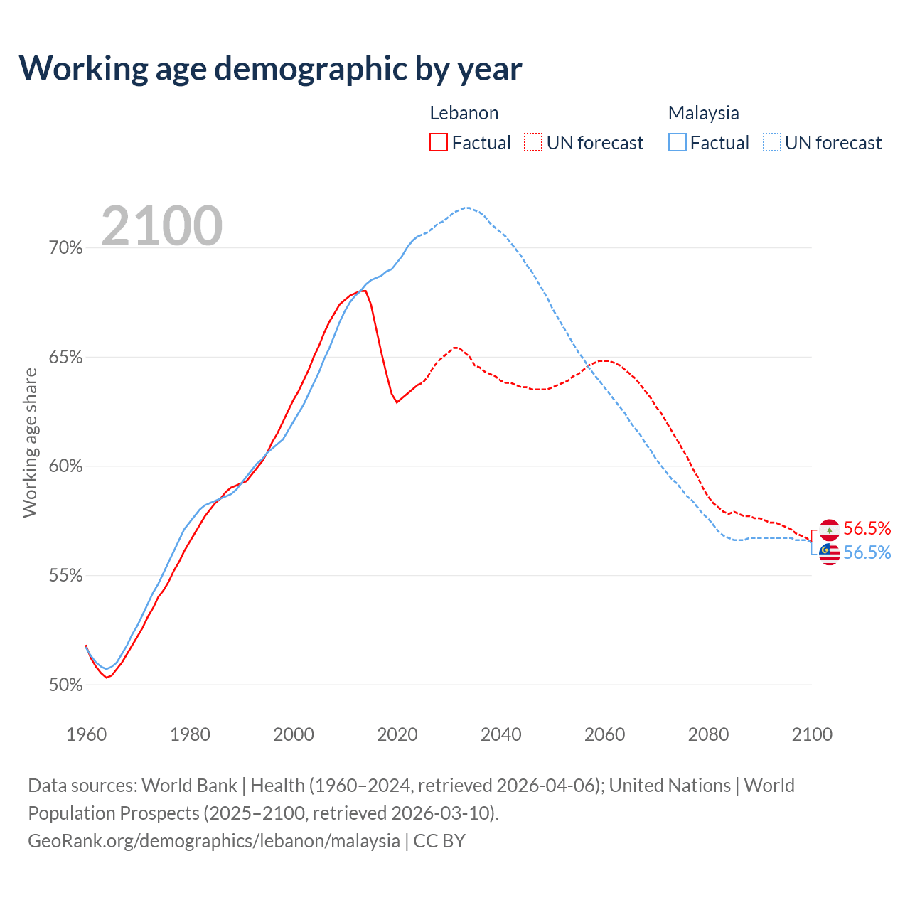 - Lebanon has 3.76M working age adults (aged 15-64) vs 25.7M in Malaysia.