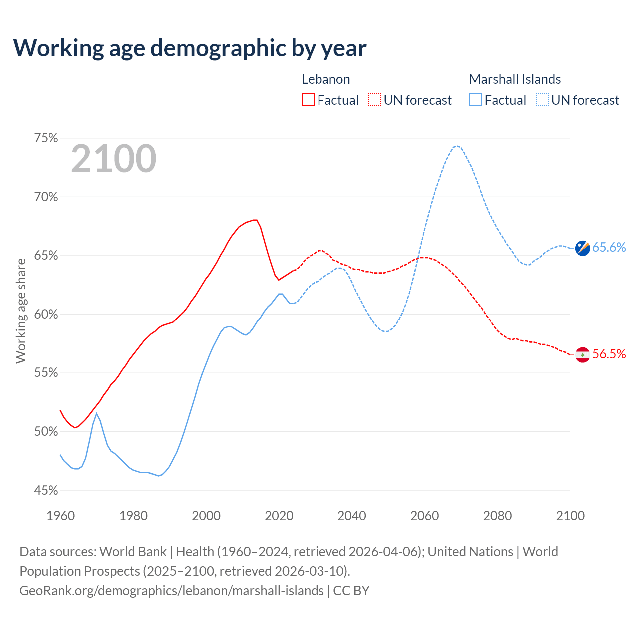 - Lebanon has 3.76M working age adults (aged 15-64) vs 21.3K in the Marshall Islands.