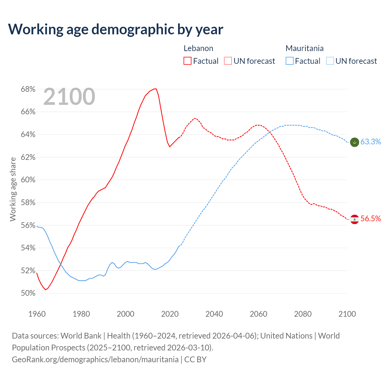 - Lebanon has 3.76M working age adults (aged 15-64) vs 2.98M in Mauritania.