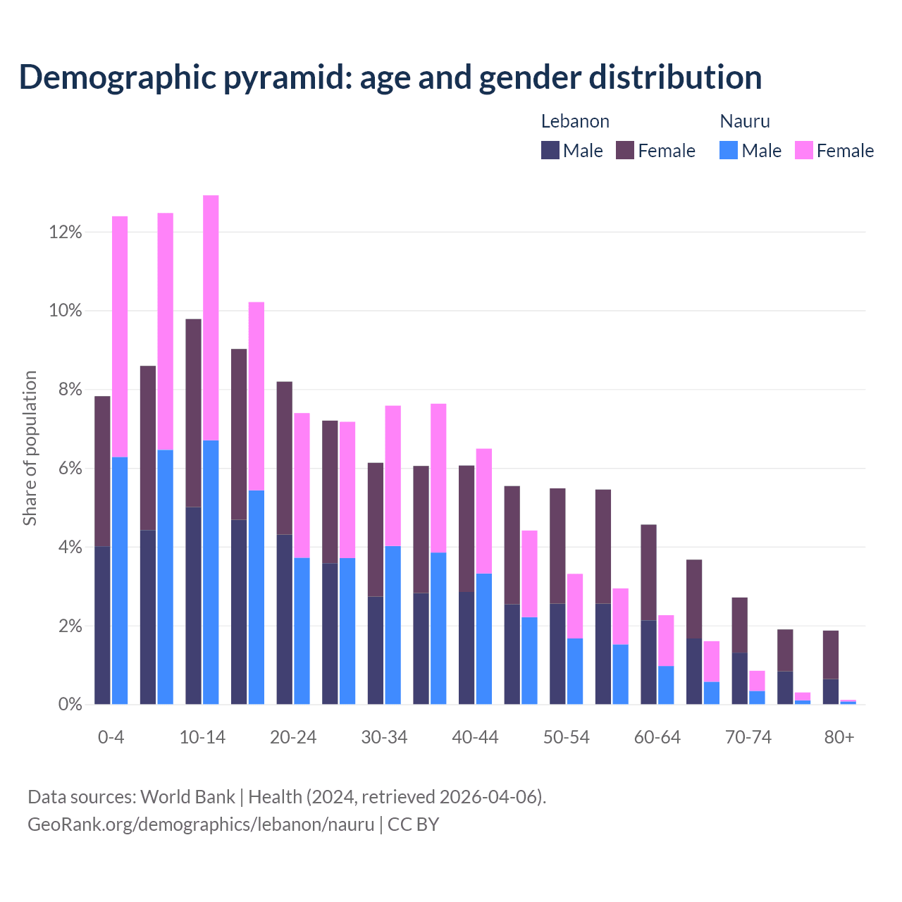 Demographics of Lebanon compared to Nauru:
