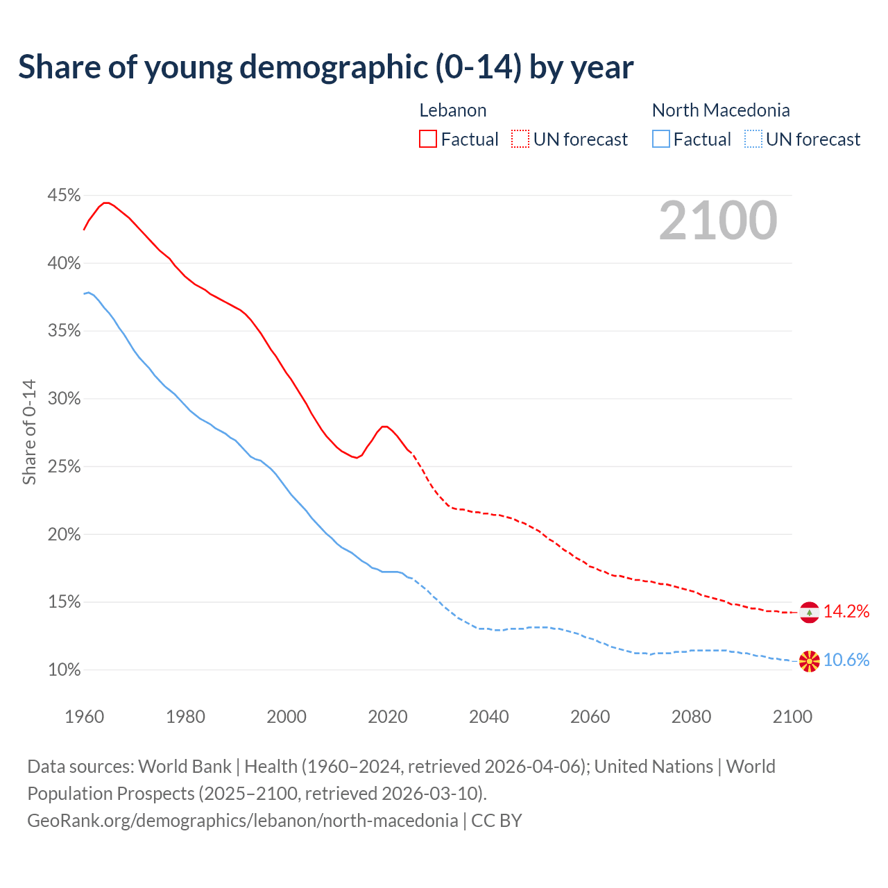 - The share of young demographic (0-15 years old) in Lebanon is 26.2% vs 16.8% in North Macedonia.