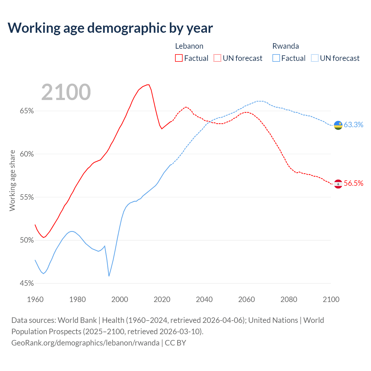 - Lebanon has 3.76M working age adults (aged 15-64) vs 8.79M in Rwanda.